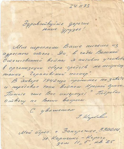 танка «Горьковский пионер».